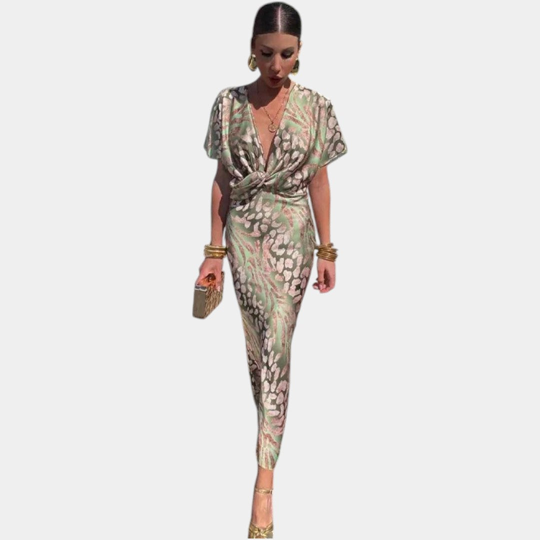 Omarm tijdloze charme met Fenna, een elegante bloemenjurk voor dames met een vrouwelijke V-hals en korte mouwen. De plissérok voegt vloeiende elegantie toe aan je look, ideaal voor zowel dagelijkse uitstapjes als formele gelegenheden. Dankzij het verfijnde silhouet straal je moeiteloos klasse en zelfvertrouwen uit – waar je ook gaat. Een onmisbaar kledingstuk voor een stijlvolle garderobe.