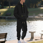 Ontdek het ultieme comfort en stijl met het Heren Trainingspak – Relaxed Fit Hoodie met Half-Zip – Cargo Joggingbroek met Zakken van Modehuis Julie. Dit veelzijdige trainingspak, ideaal voor heren, combineert een relaxte pasvorm met praktische cargozakken en een half-zip hoodie voor een complete, moderne athleisure look, perfect voor vrije tijd en casual dagen.