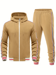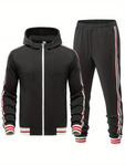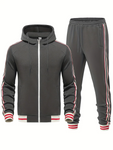 Dit tweedelige herenset, vervaardigd uit een katoenmix, biedt een slim fit pasvorm met kenmerkende gestreepte details. Een gecoördineerde look voor casual gelegenheden.