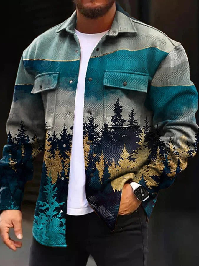- Ontwerp: Grafisch patroon, standaard kraag, knoopsluiting, borstzak, lange mouwen