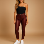 Til jouw outfit naar een hoger niveau met Milou, een hoge taille leren broek voor dames die moeiteloos elegantie en comfort combineert. Dankzij de slim fit pasvorm en het rekbare leer ontstaat een flatterend silhouet dat zich aanpast aan jouw beweging. Of je nu kiest voor een casual look met sneakers of een formele stijl met hakken, Milou geeft jouw outfit een stijlvolle edge.
