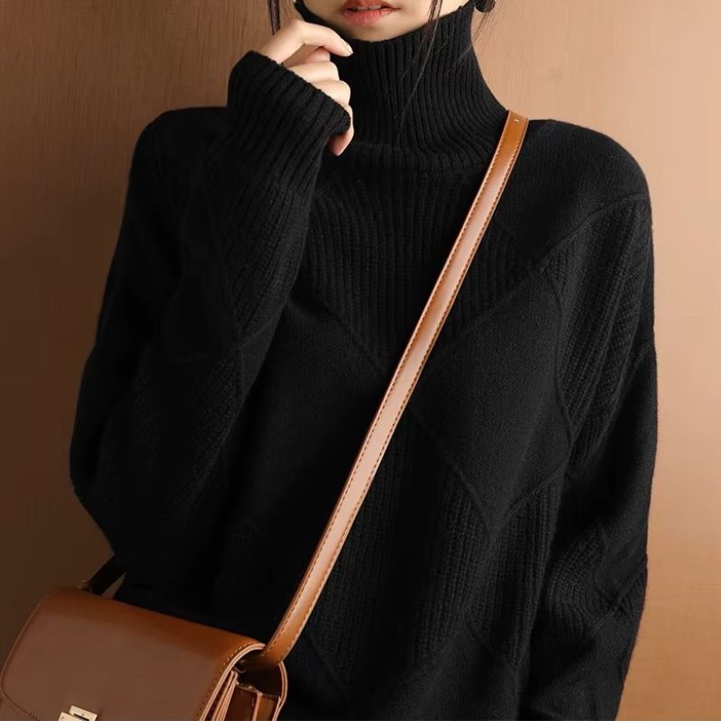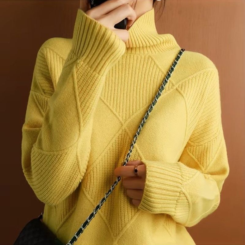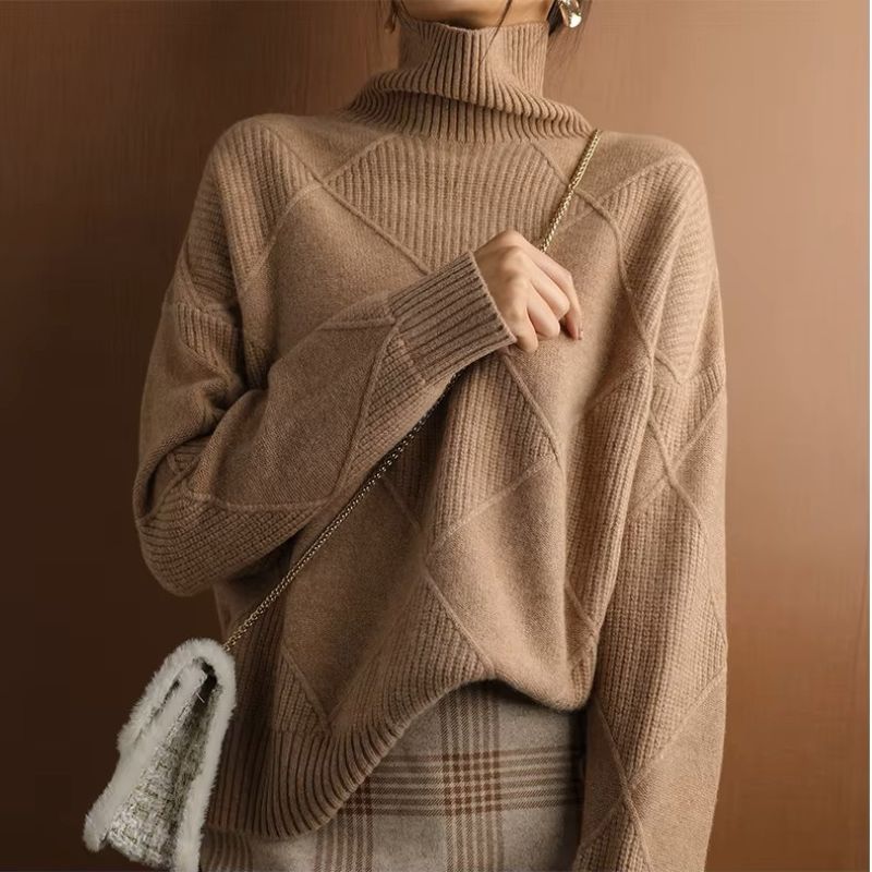 De dikke gebreide stof houdt de warmte vast, alsof je in een zachte wolk bent gewikkeld. De trui ademt comfort, elke vezel is ontworpen om je te beschermen tegen kou zonder dat je oververhit raakt.