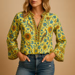 Elise is een vrouwelijke blouse voor dames met een luchtige pasvorm en stijlvolle uitstraling, ideaal voor warme lentedagen of zomerse momenten. De chique en vloeiende snit zorgt voor een ontspannen maar verzorgde look, die zich moeiteloos laat combineren met zowel korte broeken als elegante broeken of rokken. Perfect voor een brunch, dagje uit of casual avondje.